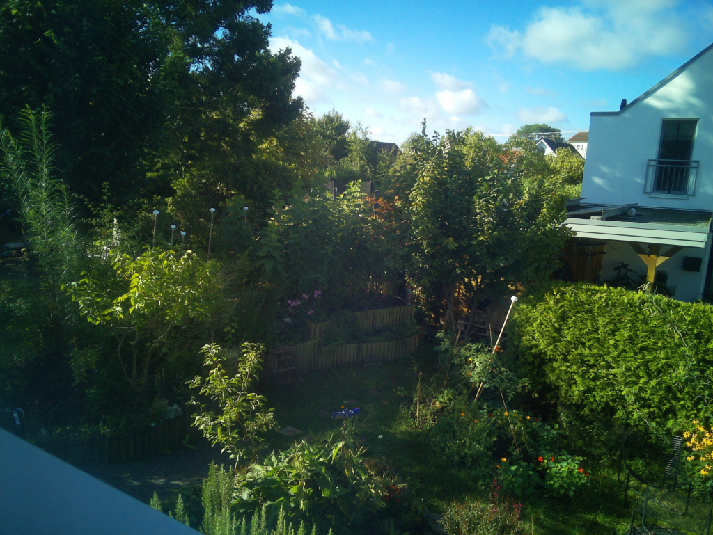 …seit ein paar Monaten werden mit einer Webcam regelmäßig Fotos vom Garten gemacht. Hier ein sonniger Septembervormittag 10 Uhr.